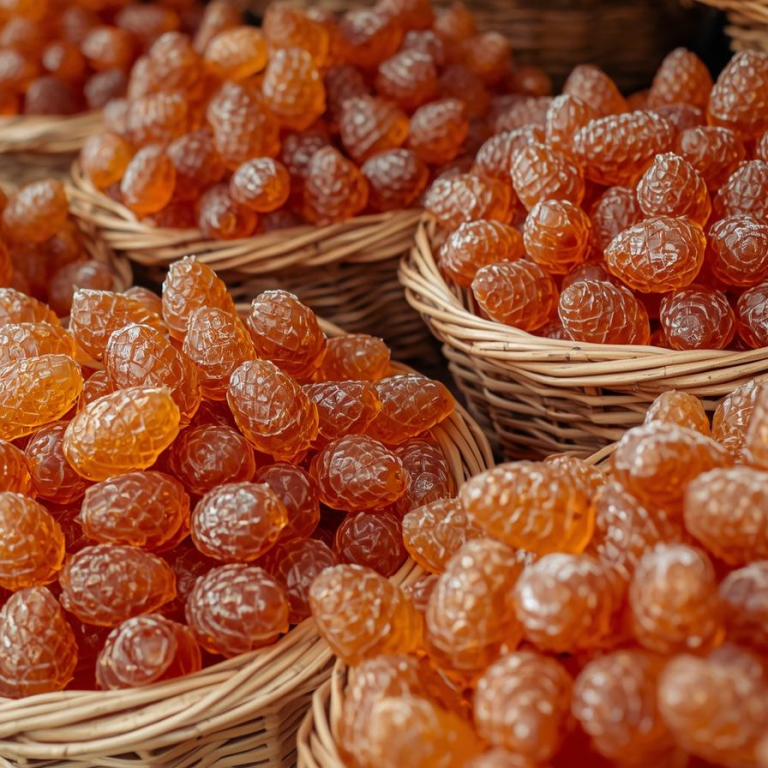 Les produits de la ruche : Miel, bonbons et bougies en cire d'abeille.